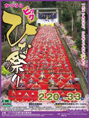 2001年に全国勝浦ネットワークの縁により、徳島県勝浦町よりおよそ7,000体のひな人形を里子として譲り受け、ここ千葉勝浦でも「かつうらビッグひな祭り」が開催されました。「かつうらビッグひな祭り」は開催期間中、勝浦市芸術文化交流センター「Küste」をはじめ、市内各所に約30,000体のひな人形が飾られ、街はひな祭り一色!市内浜勝浦の遠見岬(とみさき)神社の60段の石段一面におよそ1,200体の人形が飾られ、夕暮れ時からライトアップされます。期間中は、子どもたちが稚児の衣装で統一したひな行列や盛りだくさんのイベントや土日は歩行者天国になり各種出店が行われます。