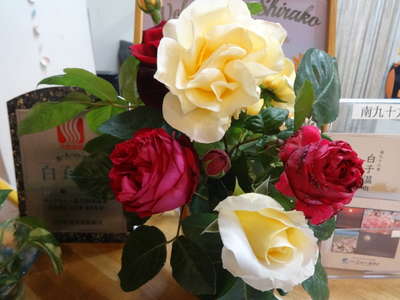 いつも、日帰り入浴にいらっしゃるお客様よりバラをいただきました~(^^)/すごく良い香りがします(^O^)