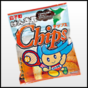 白子町のキャラクターげんき君がテニスをしているパッケージの「げんき君チップス」サクサク食感と外房ならではの「青のり海鮮味」が人気のご当地チップスには、白子特産のお米も使用。あと引くおいしさです。ぜひ、ご賞味くださいませ!!お問合せ:白子町役場 商工観光課TEL:0475-33-2117