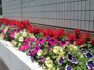 お花のことはよくわからないのですが、言われるがままペチュニアを植えてひと月。こんなに大きく育ってくれるなんて!という感じです。こんなに大きく育つならもっと間隔をあけてあげればよかった、とちょっと後悔してます。今、とてもきれいですよ。