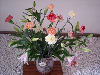 ロビーのお花が変わりました☆ミいろいろな色のカーネーションです(○・ω・)ノ通常のカーネーションより花びらが大きめなのでとてもかわいいです♪