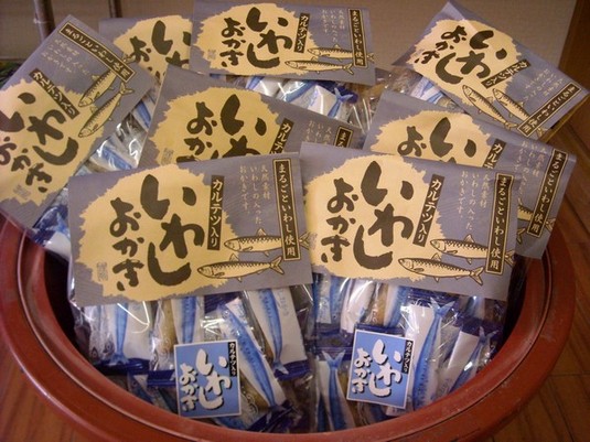 「いわしおかき」です~♪♪まるごといわしを使用した商品なのでカルシウムたっぷりです(∩゜∀`∩)!!