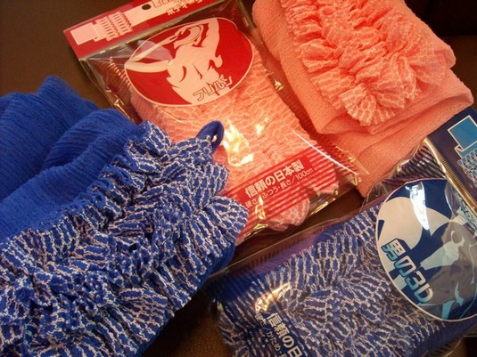 今おみやげコーナーで「フリルン」が大人気です♪「フリルン」とは中央にフリルがついた新しいタイプの入浴タオルでございますフリルがあるから泡立ち抜群!!背中のくぼみまで綺麗に洗えますよ~Ψ(☆w☆)Ψ