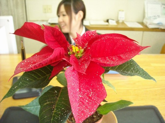 ポインセチアを飾ってみました~♪大きいものから、葉っぱがキラキラしているものまでポインセチアがロビーにいっぱいです\(○^ω^○)/ クリスマスまで枯れないように頑張って育てたいです(人´∀`)☆