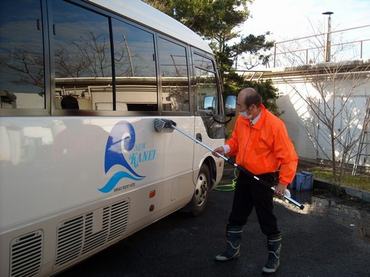 今日もいいお天気でしたね♪♪ドライバー達がバスにワックスをかけて大掃除をしていました☆”寒い中お疲れ様でした。おかげでバスがぴかぴかになりました+.(´・∀・)ノ゚+.☆