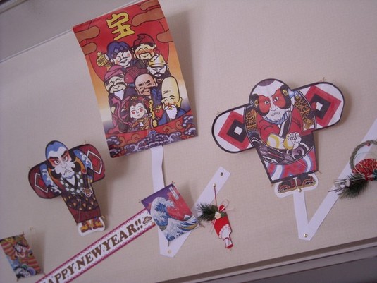 お正月ですね!いろいろな種類の凧を飾ってみました☆今日みたいなお天気がいい日は凧揚げをやりたくなってしまいます~(´з`∩