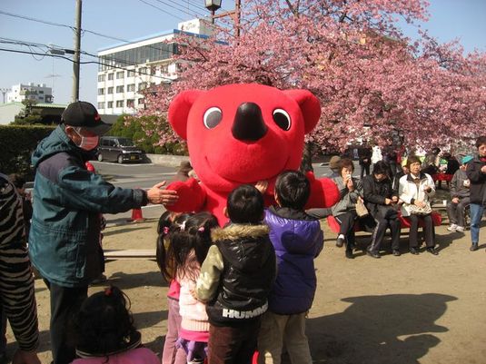 しらこ桜祭りの会場に千葉県の人気キャラクター「チーバくん」も桜を見にきてくれました!