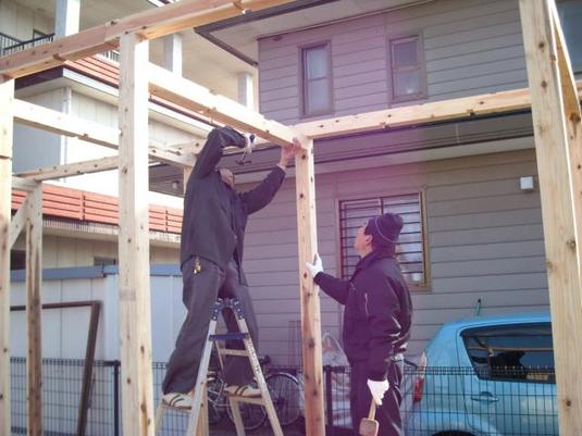 おはようございます(^^)♪今日も朝早くから寒い中作業にとりかかる男らしい男性スタッフにバレンタインのチョコレートをプレゼントしてみましたヽ(≧∀≦*)あま~いチョコレートでエネルギーを蓄えて、もりもり働いて頑張って欲しいです~(*´ω`*).+*。倉庫造りを行っているのですが、完成が楽しみでございます☆♪