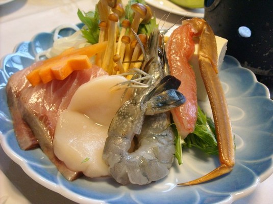 新メニューの中の1品です。海老や帆立貝、蟹身など贅沢な食材をさっぱりとしたポン酢でお召し上がりくださいませ ゚д゚)ノ♪♪