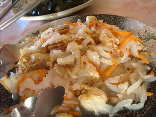 朝食バイキングの一部メニューの紹介です!こちらはホタテの和え物でございます~(*´ω`)っ