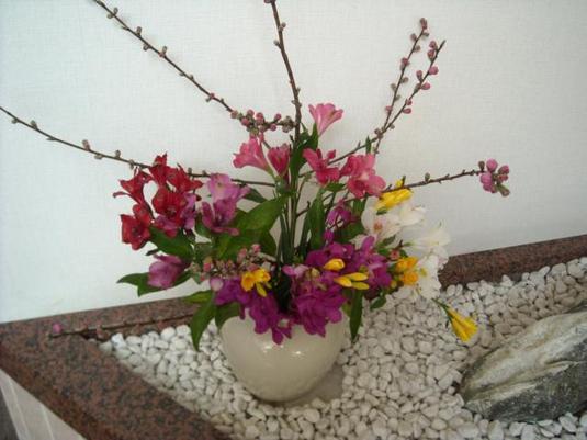 館内の生花もひなまつりをイメージして飾ってみました(゜ω゜)ポイントは『桃の花』でございます~♪♪