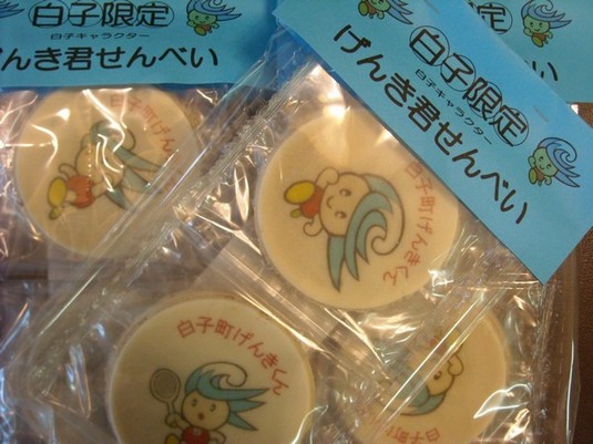 白子町の人気キャラクター「げんき君」がおせんべいになりました(っ´∀`)っなんだか懐かしさを感じるおせんべいです(´ω`)げんき君シリーズがだんだん増えていきます~♪
