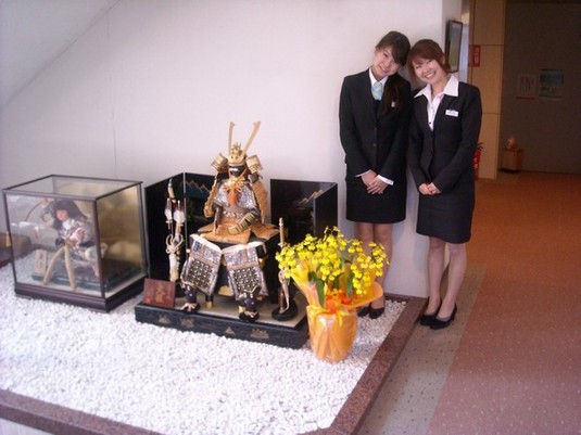 こどもの日に向けてロビーに兜を飾りました(*´v`*)たくましくてカッコイイですね~!