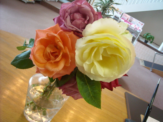 入浴会員のお客様よりお庭に咲いたバラをわけて頂きました(^^)♪お花の頂きものはとっても嬉しいです!