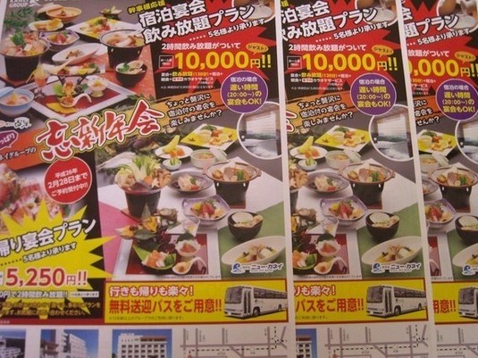 カネイグループ忘年会、新年会プランができました(^^)!!宿泊付きの宴会プラン、日帰り宴会プランもございます☆お気軽にお問合せ下さいませ♪