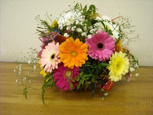 当館のスタッフがガーベラをクリスマス風にアレンジして飾ってくれました(^^)!!