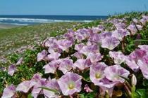 5月中旬から6月上旬にかけて、白子の海岸線一帯にピンクのハマヒルガオが風に揺らいで一斉に咲き始めます。 この時期は海岸を散歩するには最高の時期です。