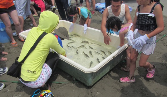 観光協会主催の海の日イベント「親子 アジのつかみ取り体験」を白里中央海水浴場で開催します。水槽に放流された元気なアジを手づかみで取ってもらいます。お誘い合わせのうえ、ぜひご来場ください。日 時 7月21日(月・海の日) 午前10時00分~会 場 白里中央海水浴場参加費 無料 (先着200組 申込み不要) ※ 参加者には軍手を配布します