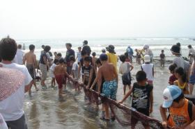 参加費無料で獲れた魚は、参加者に無料配布します。誰でも参加できる地曳き網大会となっております。7月31日(木) 片貝海岸 午前10:00から8月 7日(木) 真亀海岸 午前10:00から