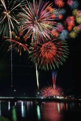 海面に華開く大きな水中花火など約5000発の花火がうちあげられます♪九十九里の浜辺から見る花火は格別です!!当館からはお車で約15分でございます♪
