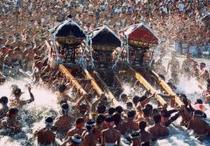 いすみ市の大原地域が一体となり、伝統的な秋祭りとして知られる「大原はだか祭り」で盛り上がります。十数基の神輿が一斉に海へと担ぎ込まれて揉み合う“汐ふみ”が、祭りのハイライトとなっており、勇ましく雄々しく神輿が海の中を駆け巡り、投げ上げられる様は圧巻です。夕刻には花火を合図に、神輿を高く上げて別れを惜しむ“大別れ式”が行われます。