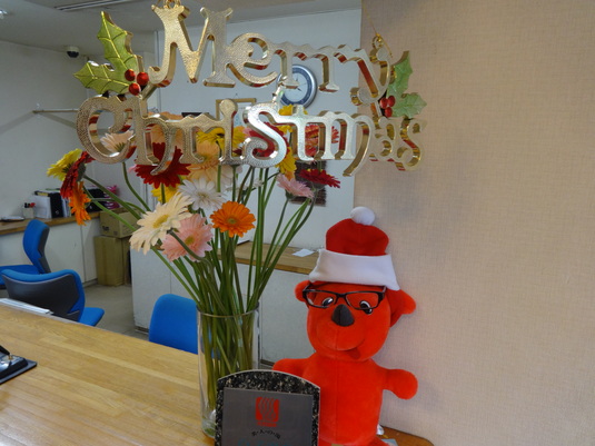 チーバ君に、サンタの帽子をかぶせてみました♪白子町で、一年中咲いているガーベラが本日届きましてイキイキとしています。色とりどりでかわいいです(*^_^*)