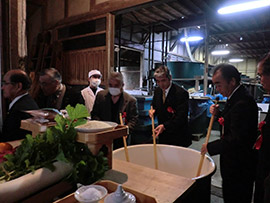 今秋紙饌田で収穫された初穂を地元の蔵元稲花酒造にて白神酒に醸造します。その工程の最初に醸造の安全を祈る祭りです。神事の後、参列者は酒造りやオリジナルラベル作りが体験できます。醸造した白神酒は平成26年元旦に蔵元より直送致します。