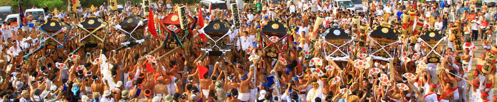 「上総の裸まつり」とも称される「上総十二社祭り」は、1200年以上の歴史と伝統を誇る房総最古の浜降り神事で、県の有形文化財に指定されています。2,500人の男衆が神輿を担ぎ出し、玉前神社の神馬を始め、騎馬と大宮・若宮の2基の神輿が、各社それぞれに九十九里の大海原を背に渚を疾走し、10基余りの神輿が集結する光景は圧巻ですよ。